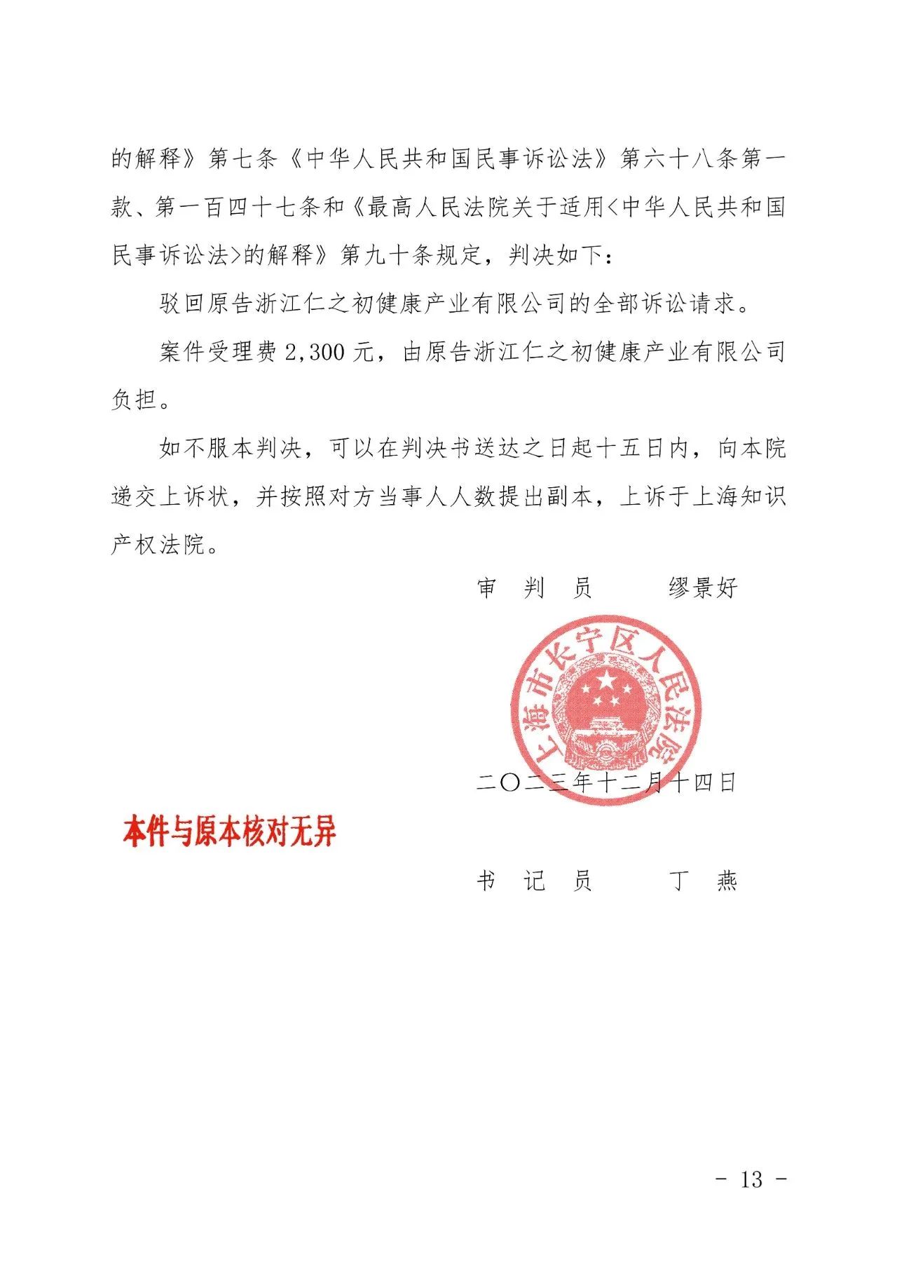 平顶山辉知胜诉佳讯 | “仁之初健康”著作权及不正当竞争纠纷案,法院:驳回全部诉讼请求!